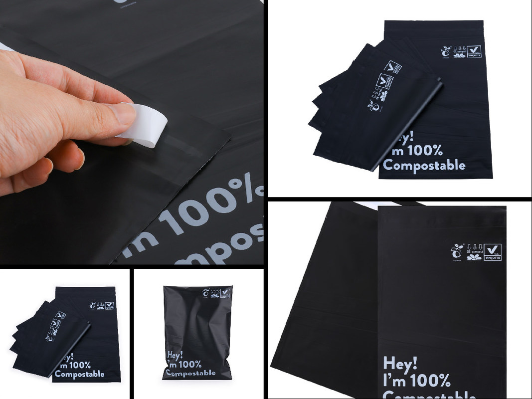 Borsa d'imballaggio copmostable d'imballaggio biodegradabile amichevole di trasporto del bollettino poli di logo di eco su ordinazione del nero per preciso